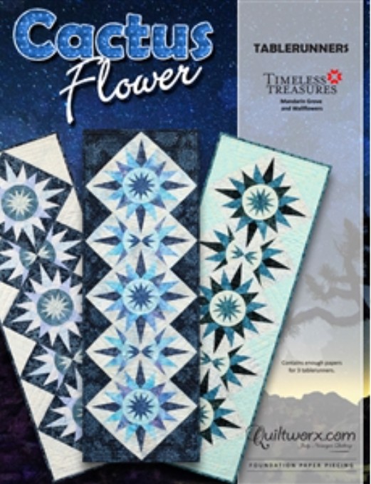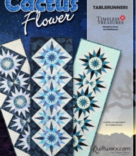 Cactus Flower Table Runner was designed by Quiltworx.com as a beginner project to teach the basics of paper piecing. The 6″ cactus block used in this pattern has been used in several Quiltworx patterns in a variety of different layouts.